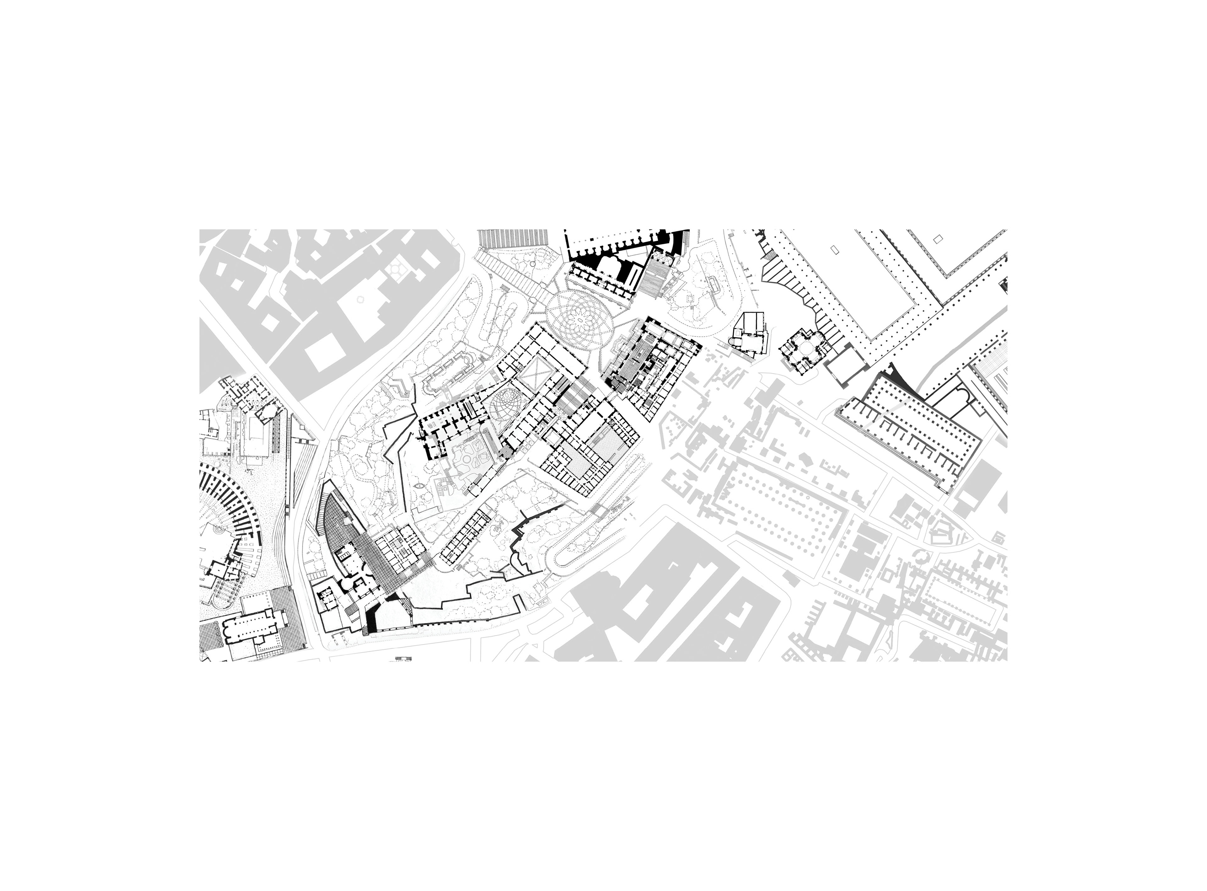 The building design concept was to create subtle design and free plan conditions that do not interfere with the urban fabric of the context. The urban center site is built on the south end of the hill.